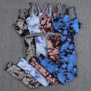 Yoga Set Women Seamless Tie Dye Fashion Push Up Bra Set  - Regular price