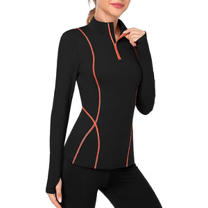 Women's Long Sleeve Workout Tops Zip Thumb Hole Athletic Running Sweatshirt